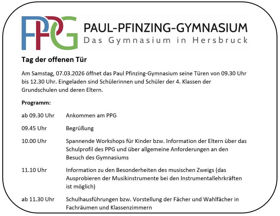 Auf den Seiten dieser Homepage informieren wir Sie über unser PPG und geben Ihnen Einblicke in laufende schulische Aktivitäten sowie in die einzelnen Unterrichtsfächer.