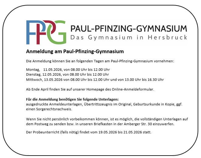 Wir begrüßen Sie auf den Seiten des PPG, dem Gymnasium in Hersbruck. Sie können sich hier einen Eindruck über das vielfältige Engagement unserer Schulfamilie verschaffen.
