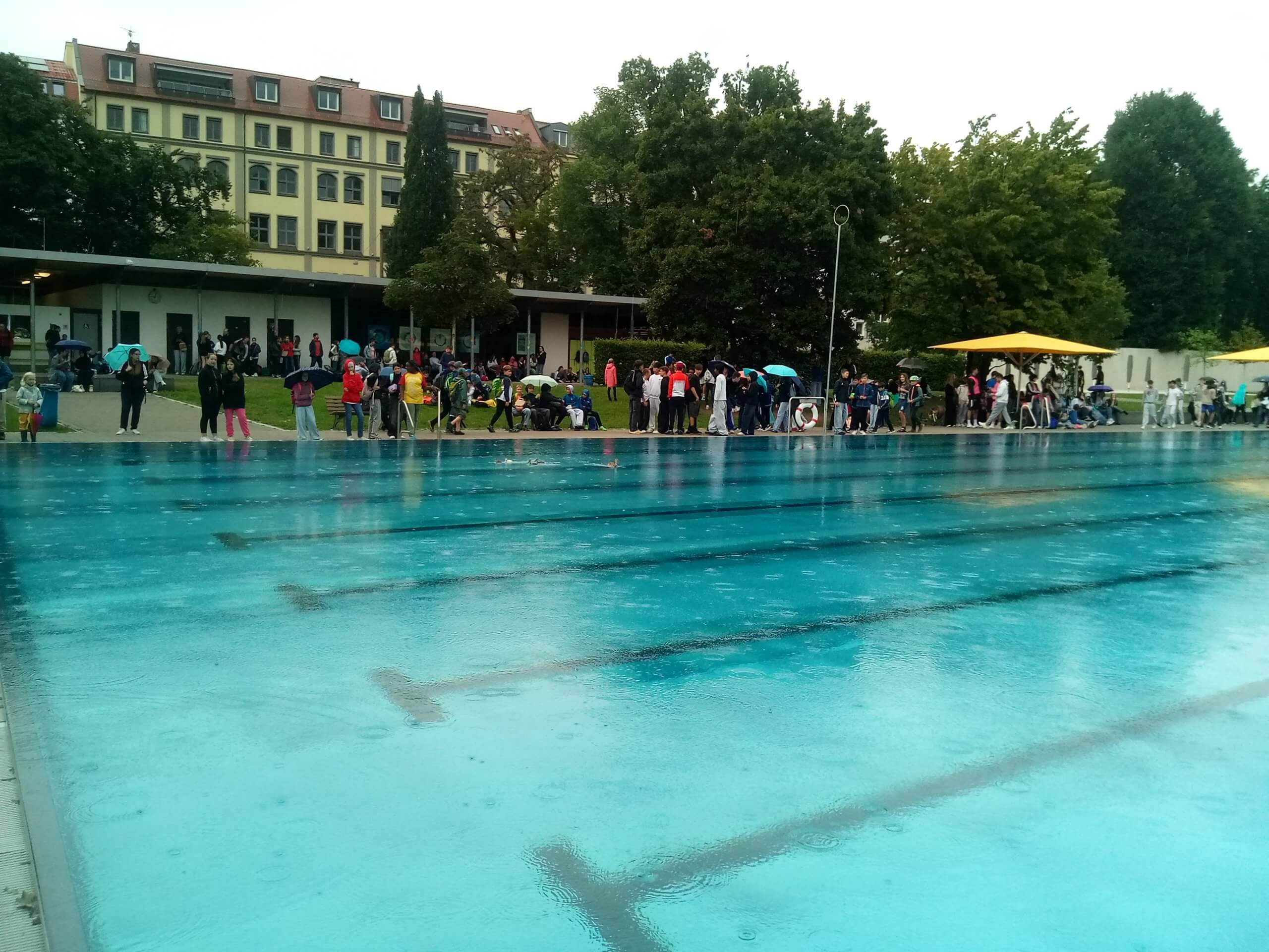 Vorletzter Schultag: Der fünfte Schülertriathlon im Nürnberger Westbad bzw. auf den Rad-und Gehwegen entlang der Pegnitz – organisiert von der Peter-Vischer-Schule. Das PPG war mit seinem Schul-Triathlon-Team erstmals am Start.