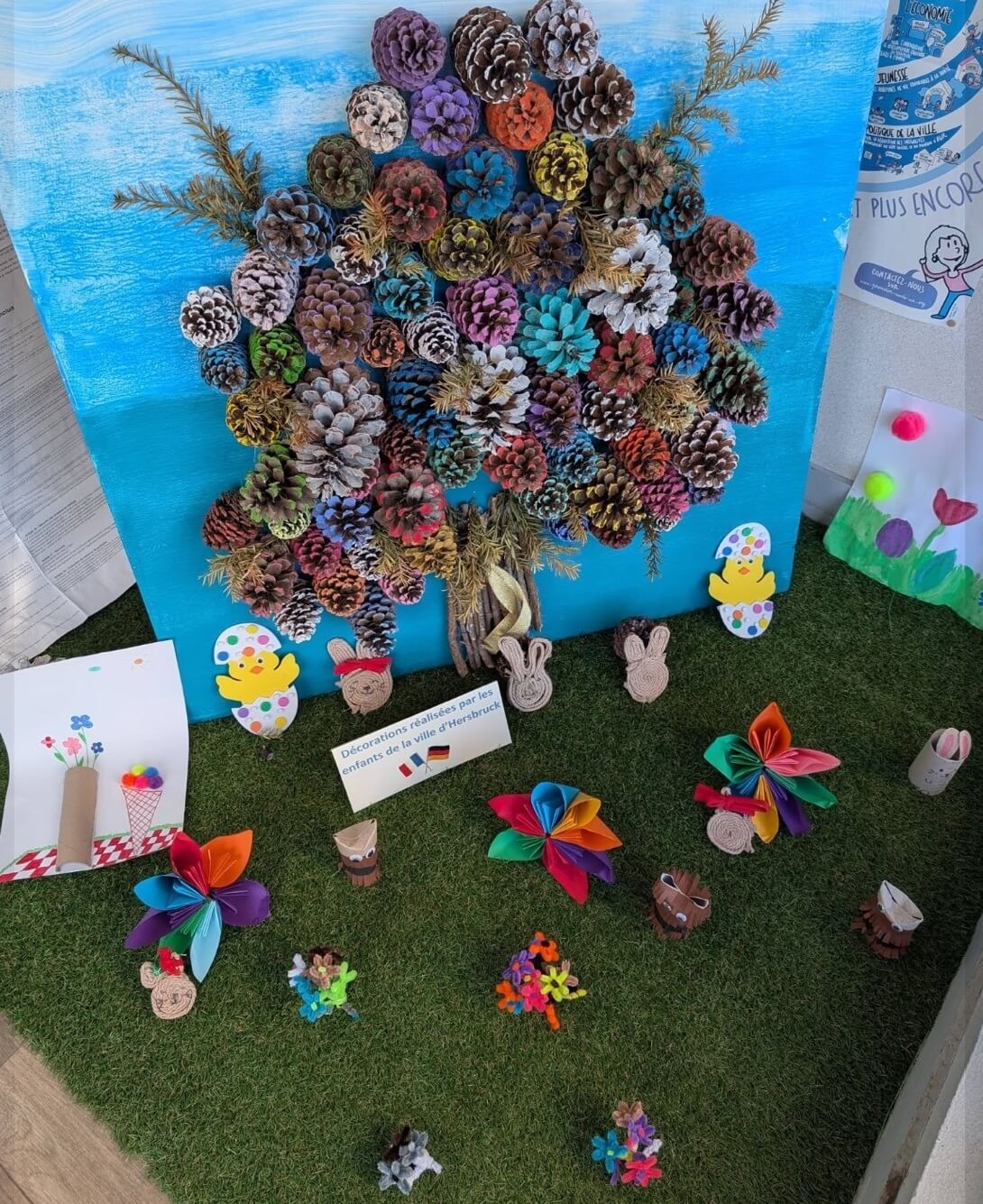 Mit viel Kreativität und Freude hat die Klasse 6e eine bunte Osterdekoration für Oradour-sur-Glane gestaltet. Entstanden sind fröhliche Frühlingsblumen, Hasen und andere kleine Bastelarbeiten, die nun in der Gemeindeverwaltung von Oradour ausgestellt sind.